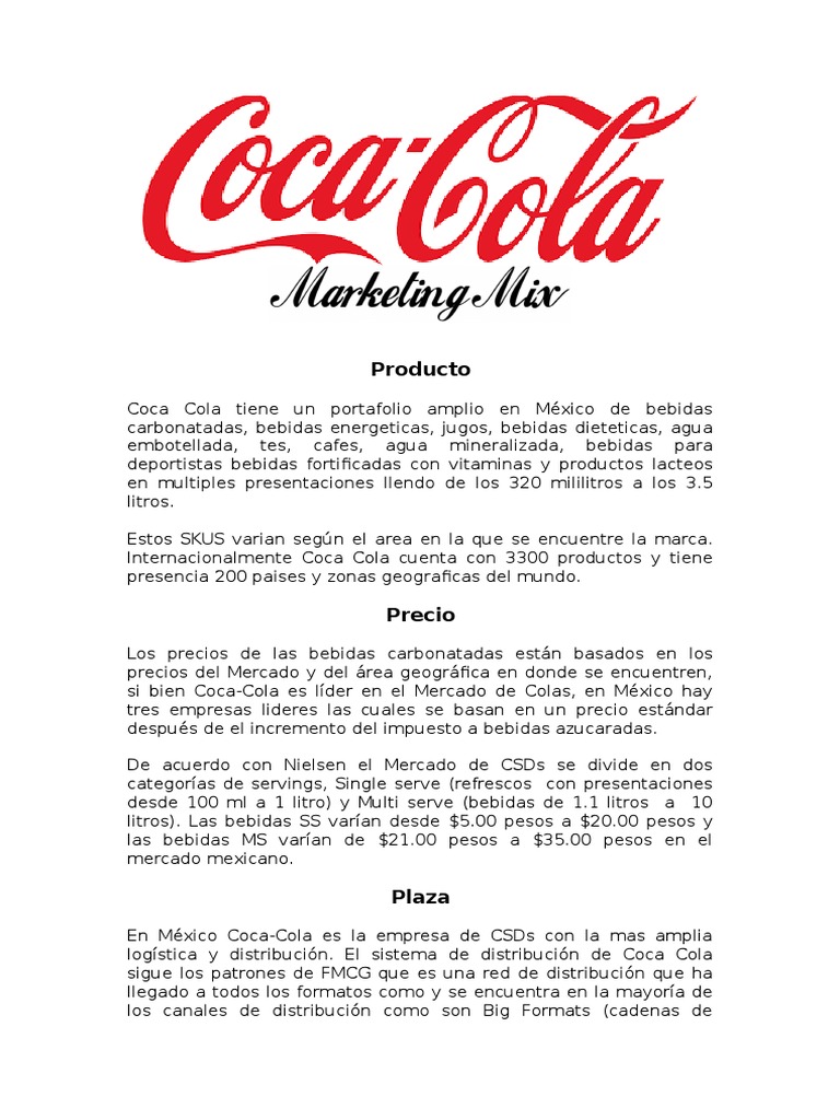 Coca Pepsi Marketing Mix Coca Cola Pepsi