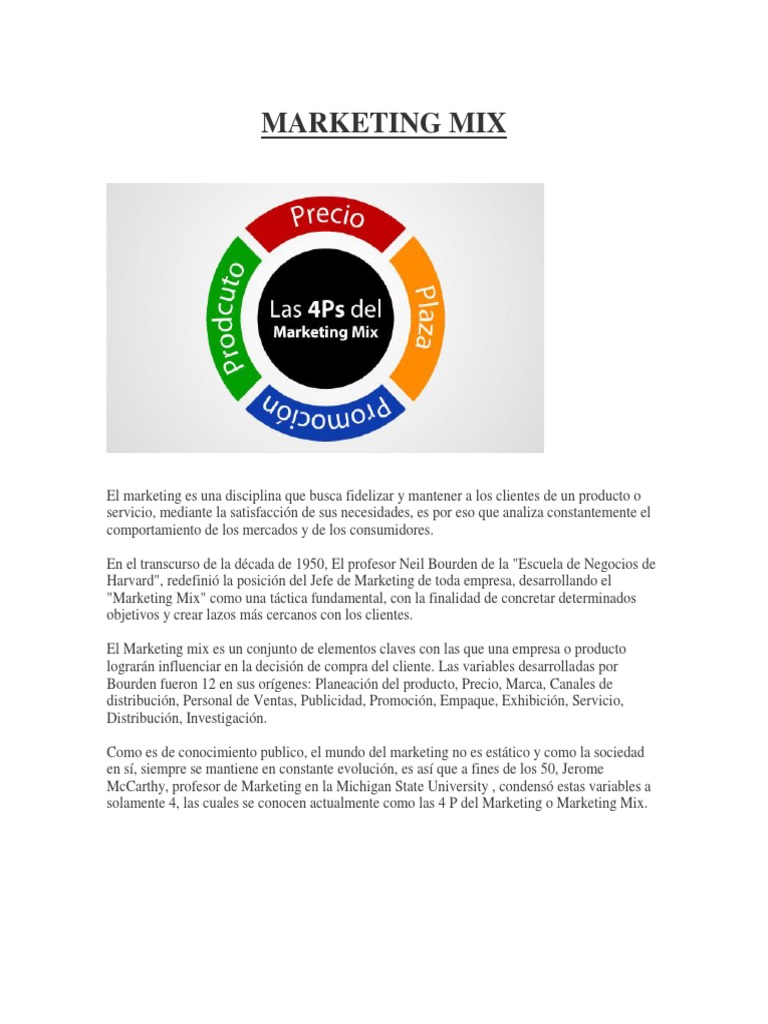 Marketing Mix Producto Negocio Marketing